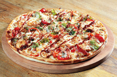 200 gr barbekü soslu tavuk,mozzarella,mantar,mısır,biber